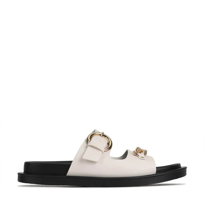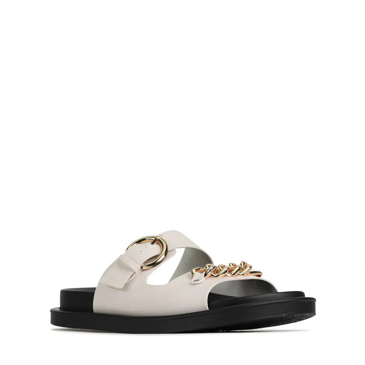 Need to make a statement? ALANI slides will do the trick! With metallic hardware and a double strap, these slides will make your feet shine brighter than the stars. The chain embellishment and adjustable strap will keep you comfy and looking good. Now that's a win-win!
